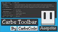 Carbs Toolbar 2.7.0 General Bug Fixes: Fixed an issue in newest version of Aseprite where duplicate and shift was acting funky, this might have been my fault but it's cool now that it's fixed right?...