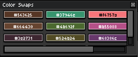 Color Swap is an extension for Aseprite that makes replacing multiple colors and even exporting your color swaps much faster and far less repetitive. You'll be able to create, save and edit color sets for later use as well. Saving you heaps of time!
